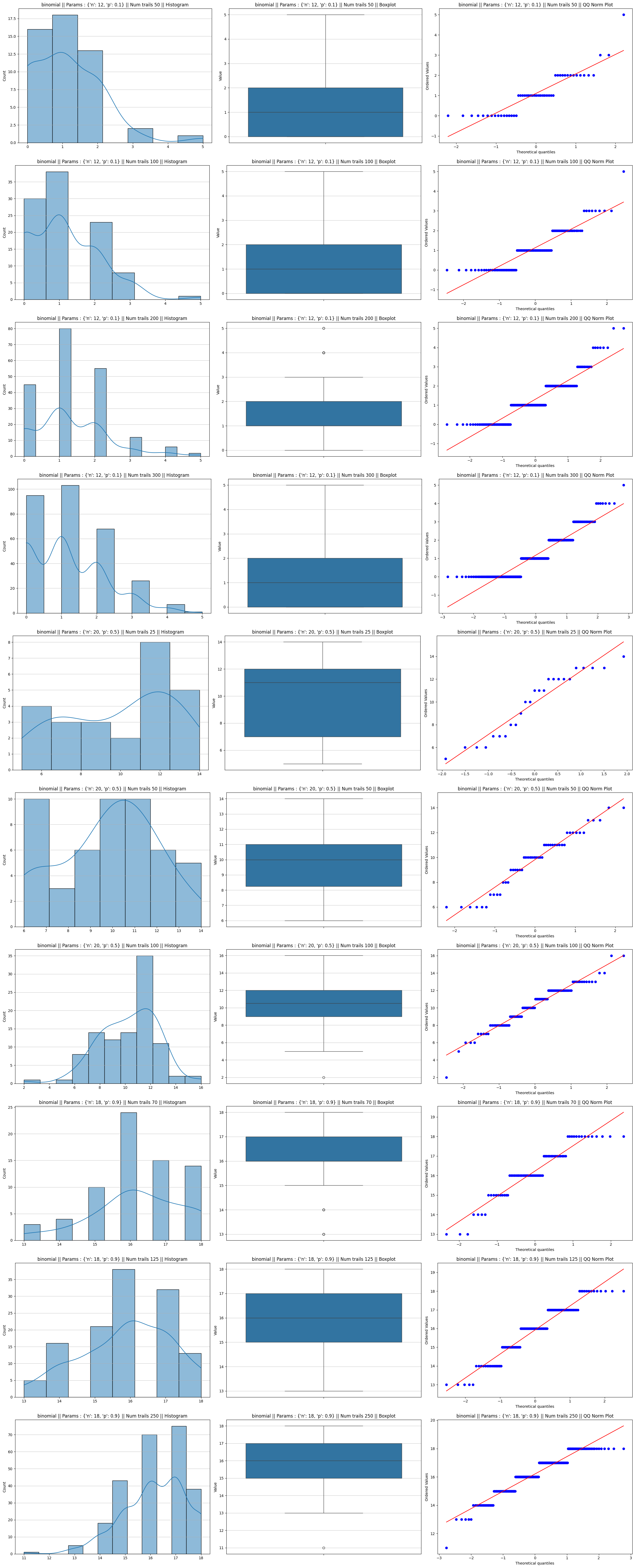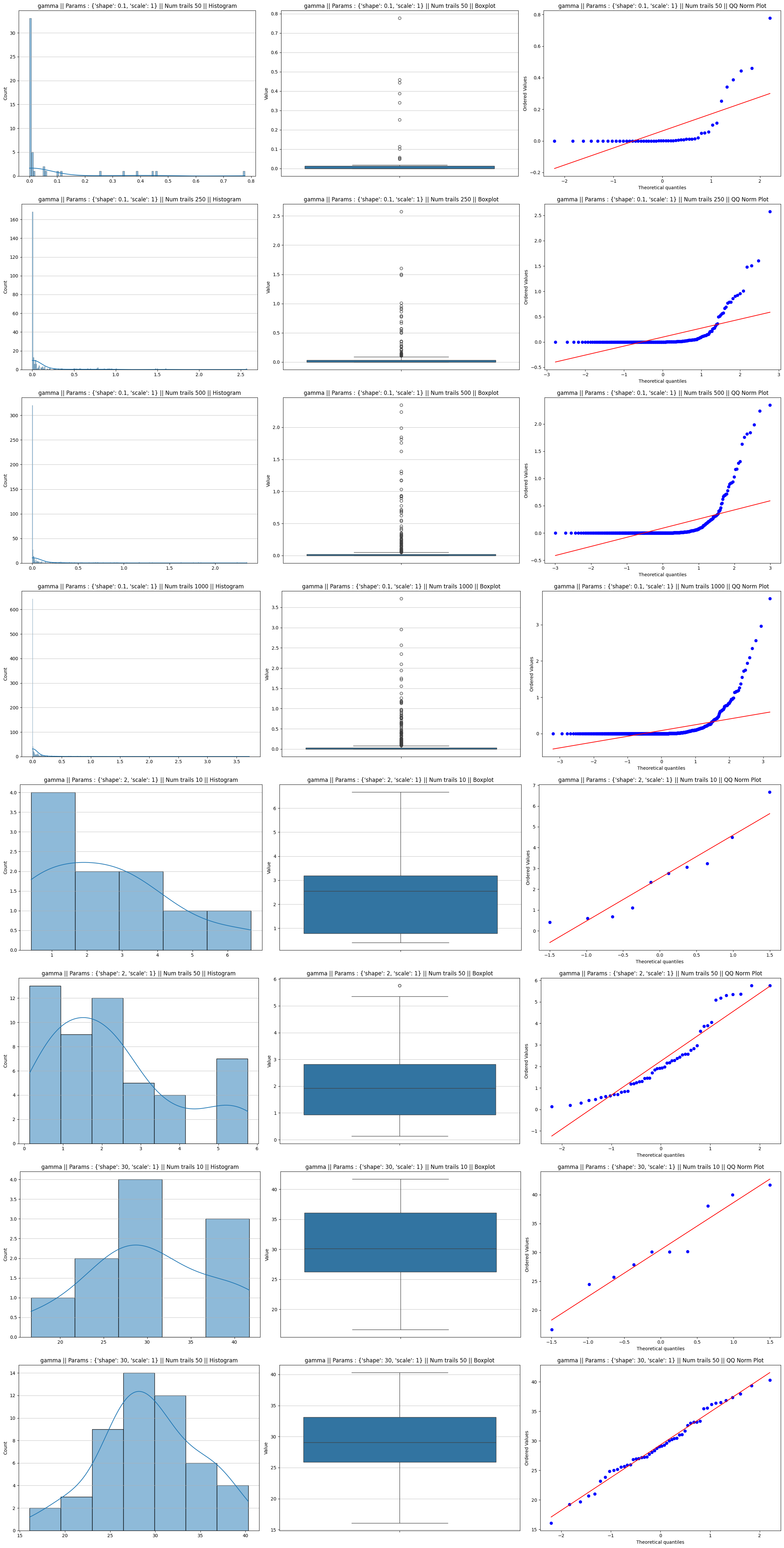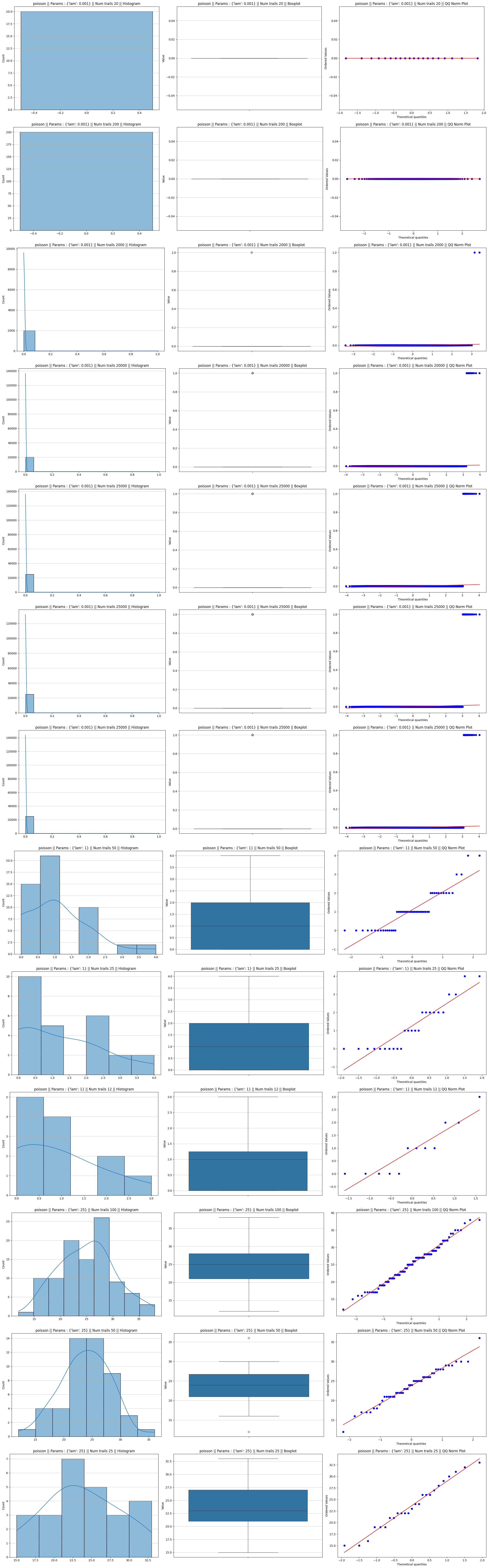 fig = plot_distributions_combined(ls_mean, f"{distribution} || Params : {params[1]} || Num trails {params[2]} ||")